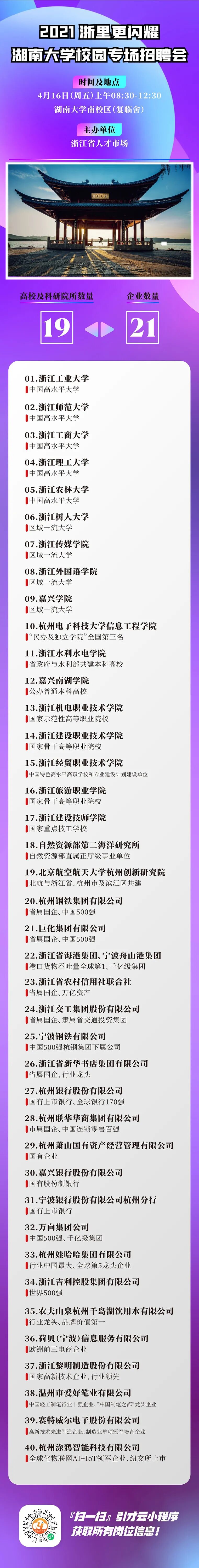 浙江省人才市场组团赴湖南长沙招聘,欢迎湖南各大高校2021届优秀毕业生莅临洽谈!